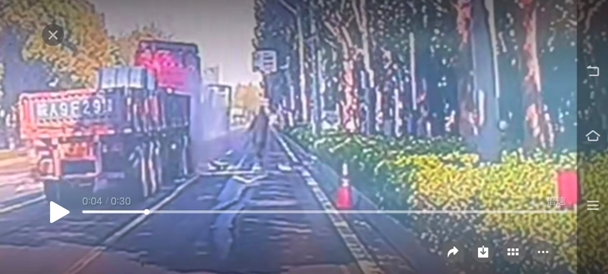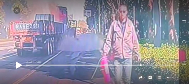2025年10月23日上午,公交二分公司614路駕駛員楊吉龍師傅,正駕駛著公交車執行營運任務。當車輛行駛至205國道綜合保稅區路段時,發現前方一輛重型貨車的油箱處正冒出滾滾濃煙,并不時有火苗躥出,貨車司機正焦急地試圖撲救,但收效甚微,情況十分危急。